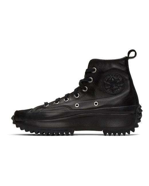 These black shoes have a canvas upper with a reinforced toe cap and boast cupsole construction with deep sawtooth tread patterns up the heel and b. Anderson x converse run star hike high is created with an aesthetic that exaggerates proportions, specifically the sole. This product is unisex and is listed as men's sizes. The converse run star hike ox features. These sneaker boots come in a variety of colorways and materials like leather and organic canvas.